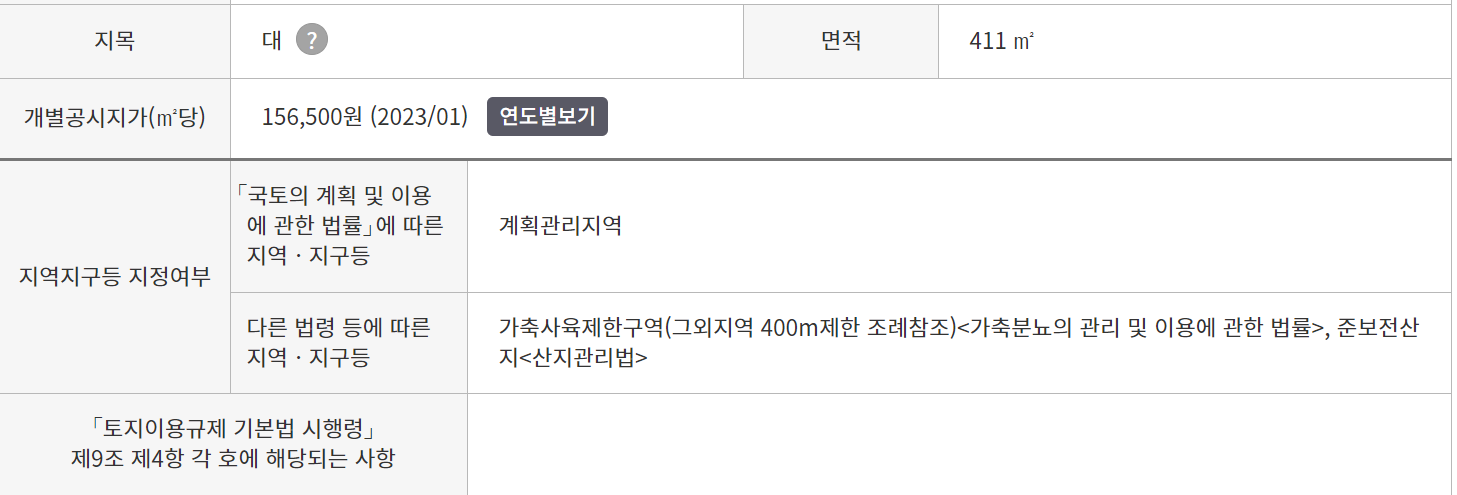 물건2: 공부상의 면적 및 지역지구 표시