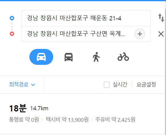 합포구 월용동 사거리에서 18분정도 걸리는 거리에 있습니다.
